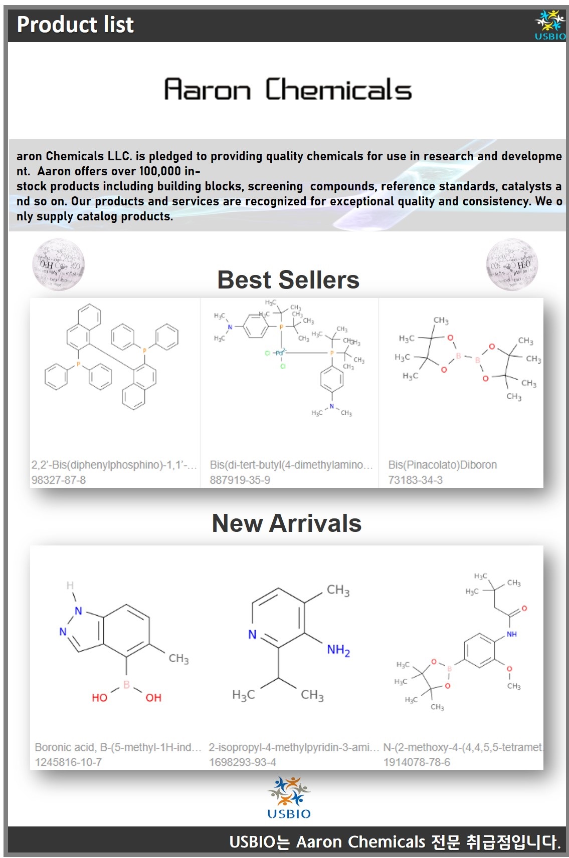 다수의 대리점을 보유하고 있는 어스바이오는 Aaron Chemicals 전문 취급점입니다.