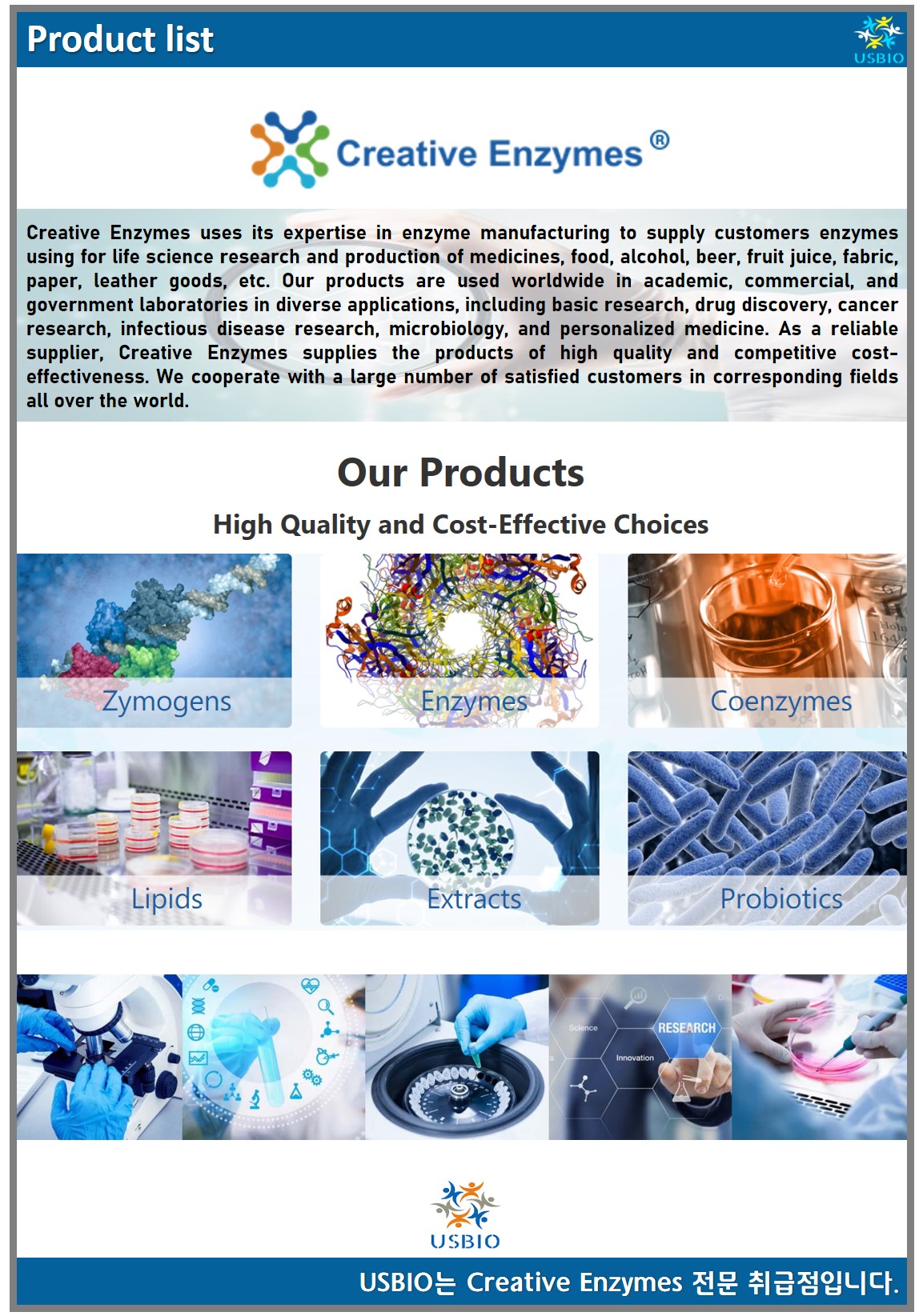 다수의 대리점을 보유하고 있는 어스바이오는 Creative Enzymes 한국 공식 대리점입니다.