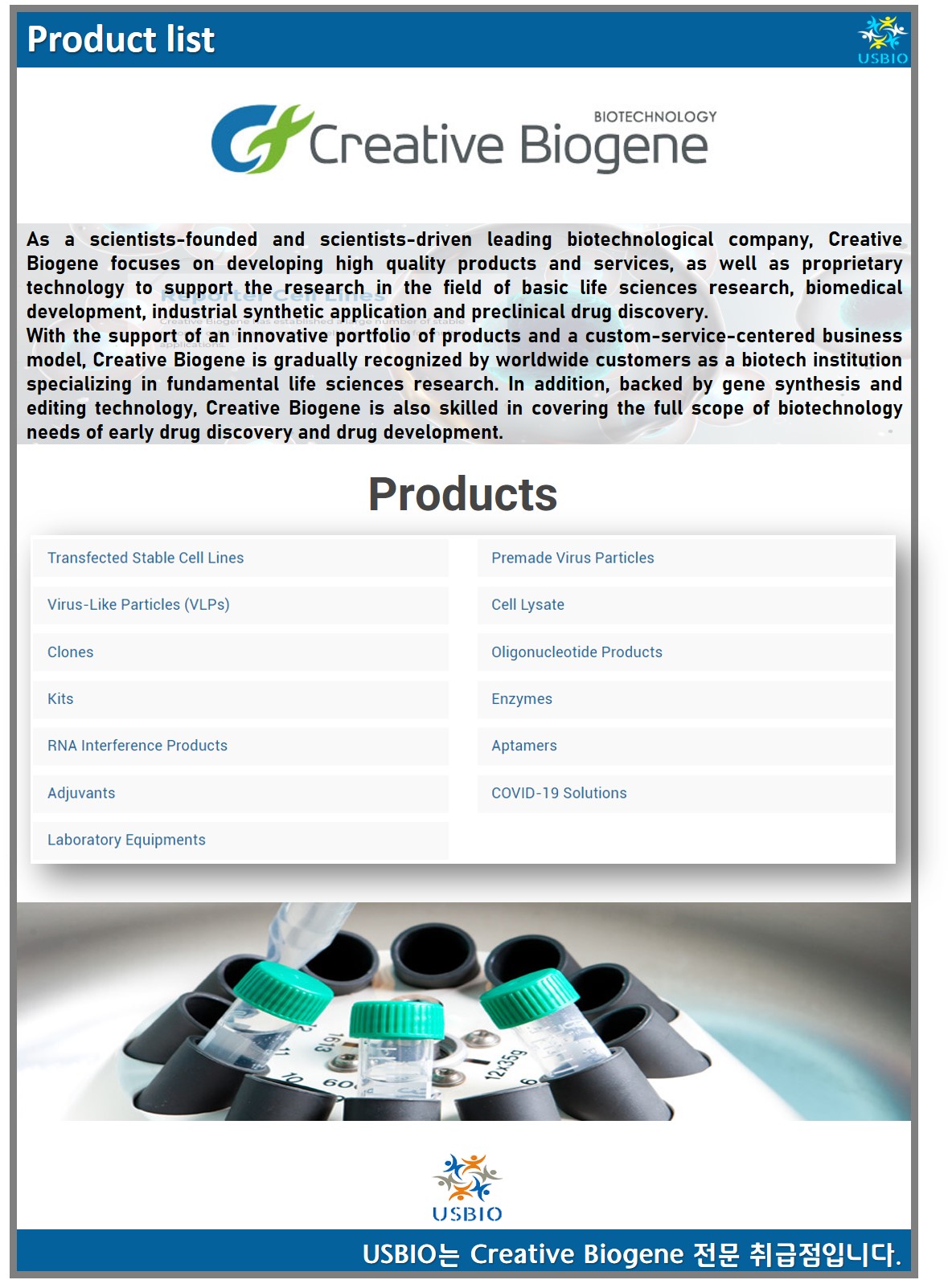다수의 대리점을 보유하고 있는 어스바이오는 Creative Biogene 한국 공식 대리점입니다.