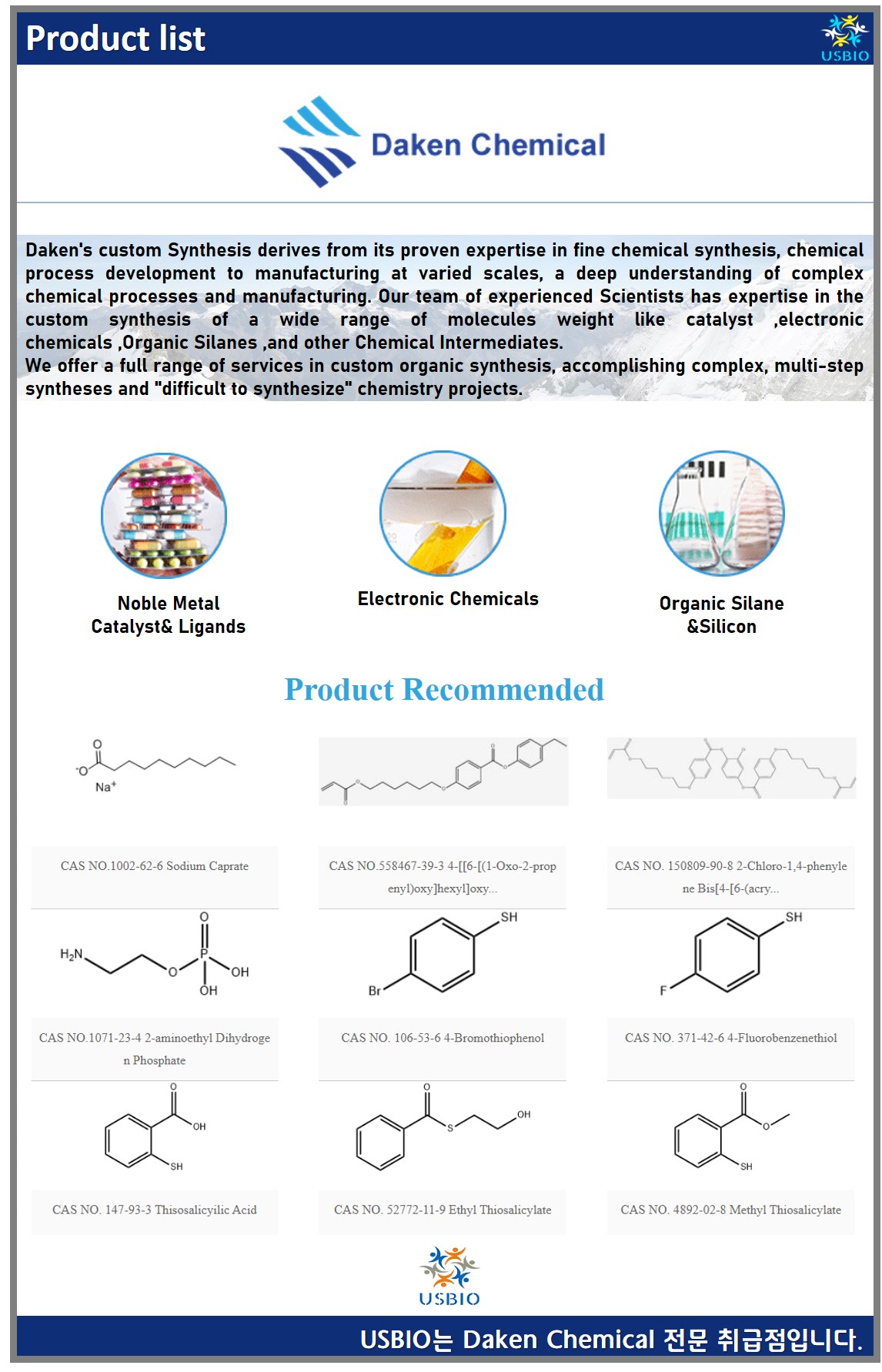다수의 대리점을 보유하고 있는 어스바이오는 Daken Chemical 전문 취급점입니다.