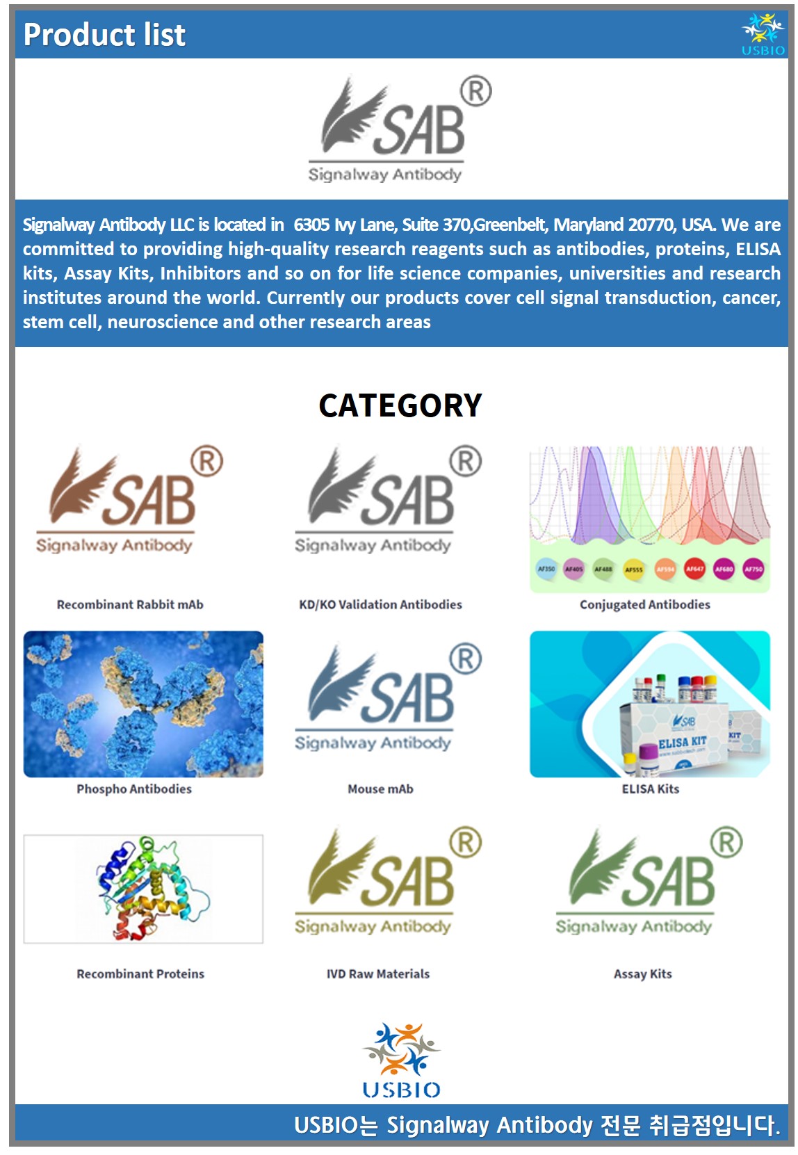 다수의 대리점을 보유하고 있는 어스바이오는 Signalway Antibody 전문 취급점입니다.