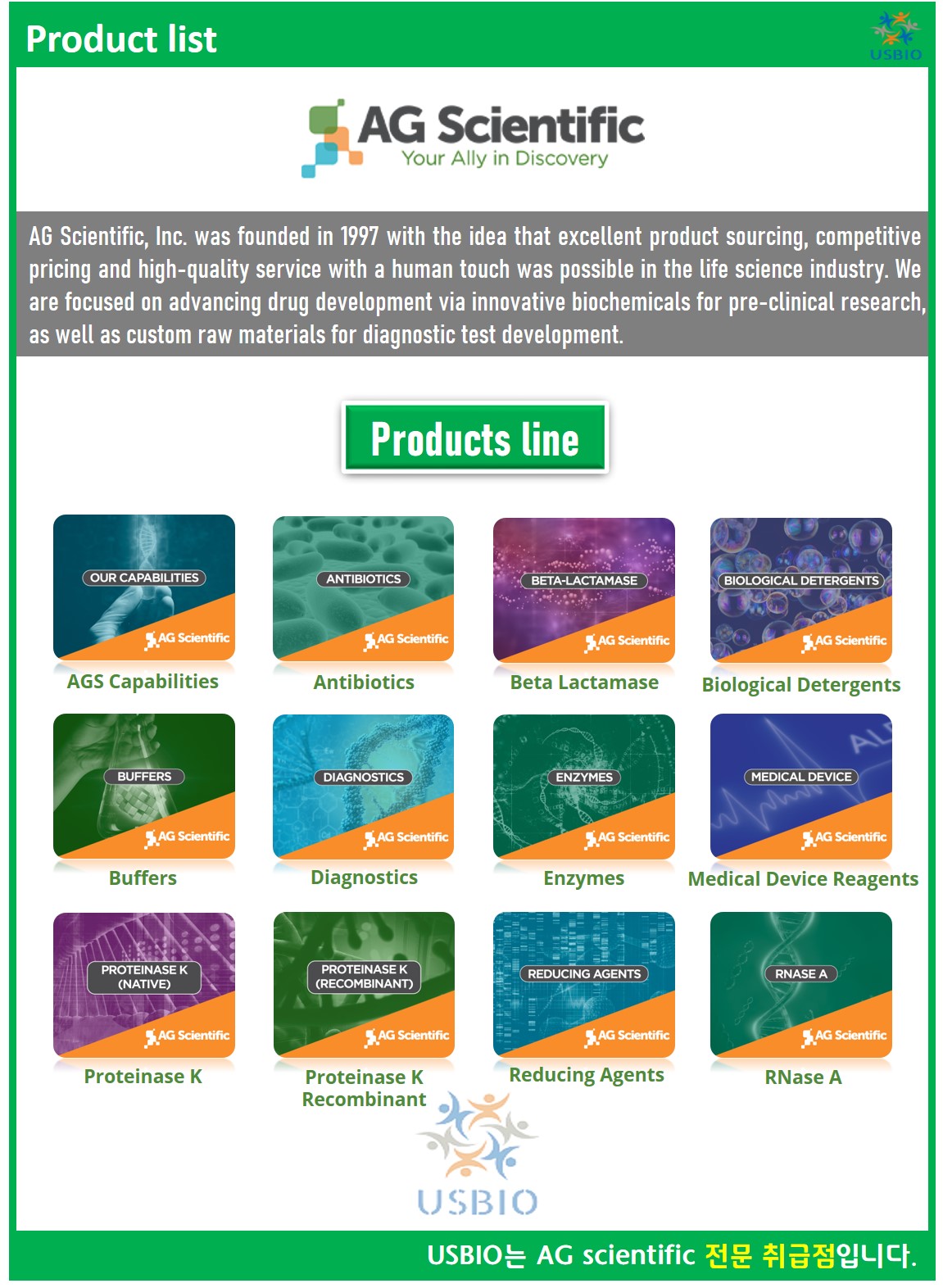 다수의 대리점을 보유하고 있는 어스바이오는 AG Scientific 공식대리점 관련 업무대행/수입 전문취급점입니다.