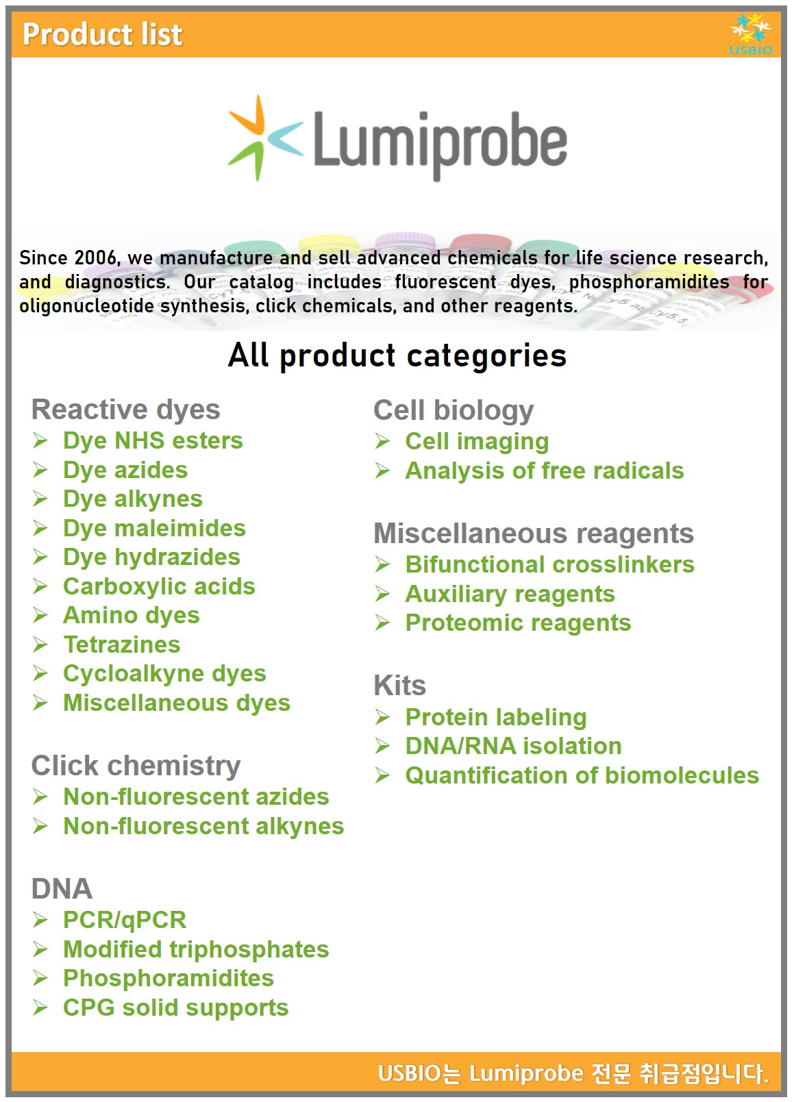 다수의 대리점을 보유하고 있는 어스바이오는 Lumiprobe 한국 공식 대리점입니다.