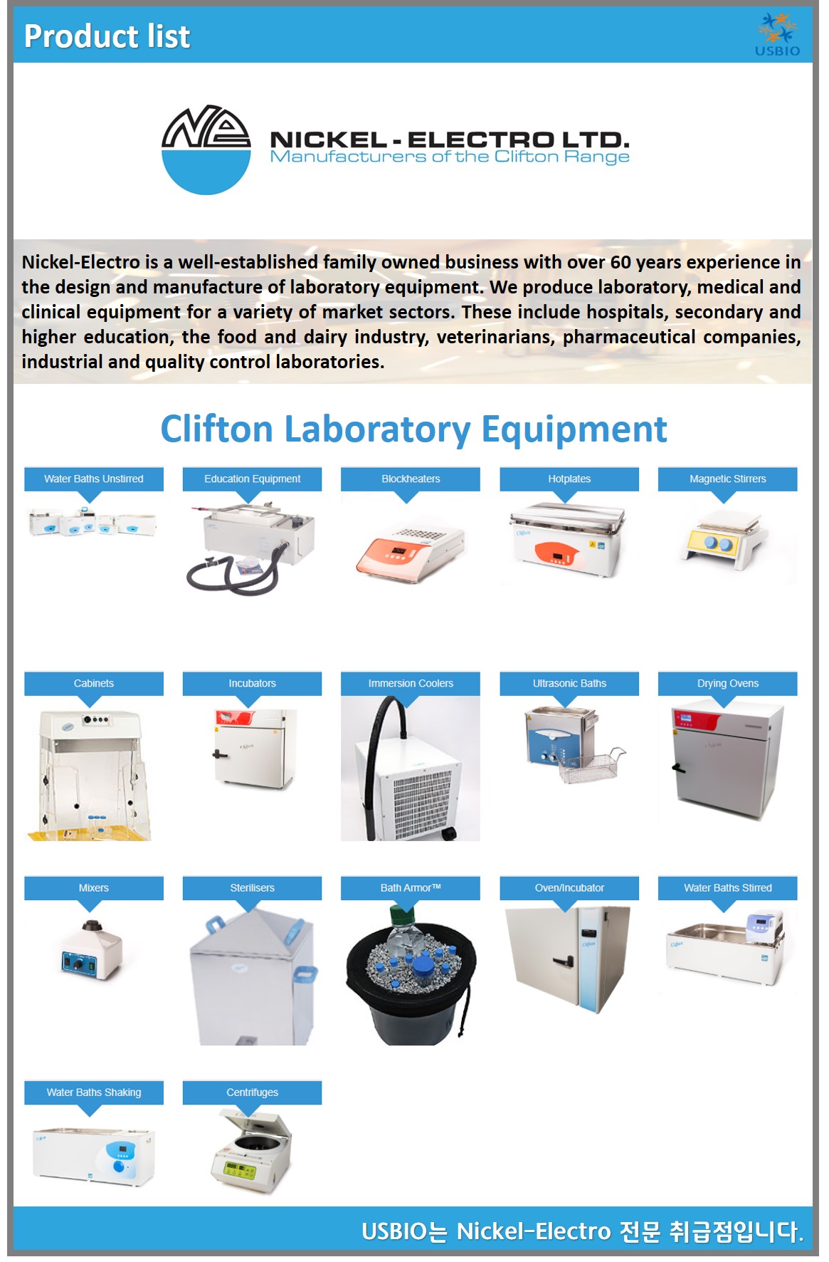 Nickel-Electro Ltd.는 다양한 시장 부문을 위한 실험실, 의료 및 임상 장비를 생산하는 영국 제조 회사입니다. Nickel-Electro는 교육 및 산업 시장을 위한 광범위한 제품을 설계하고 생산하며 실험실 금속 제품™, 주걱, 집게, 도가니, 레토르트 스탠드, 알루미늄, 스테인리스 스틸 및 니켈을 포함한 다양한 재료로 광범위한 실험실 소모품을 제조하고 있습니다. 또 다목적 공장을 통해 Nickel-Electro는 업계에서 최고 품질의 주문 제작 제품을 생산할 수 있습니다. Nickel-Electro는 실험실 장비의 설계 및 제조 분야에서 60년 이상의 경험을 기업으로 최첨단 기술과 전통적인 기술 및 가치의 결합을 믿고 고품질 정밀 판금 작업자라는 자부심을 가지고 있으며 더 높은 품질을 위해 끊임없이 노력하고 있습니다.