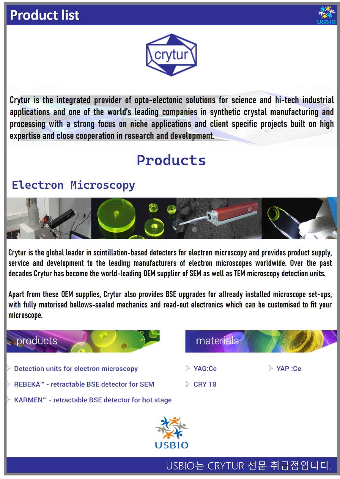 다수의 대리점을 보유하고 있는 어스바이오는 CRYTUR 전문 취급점입니다.