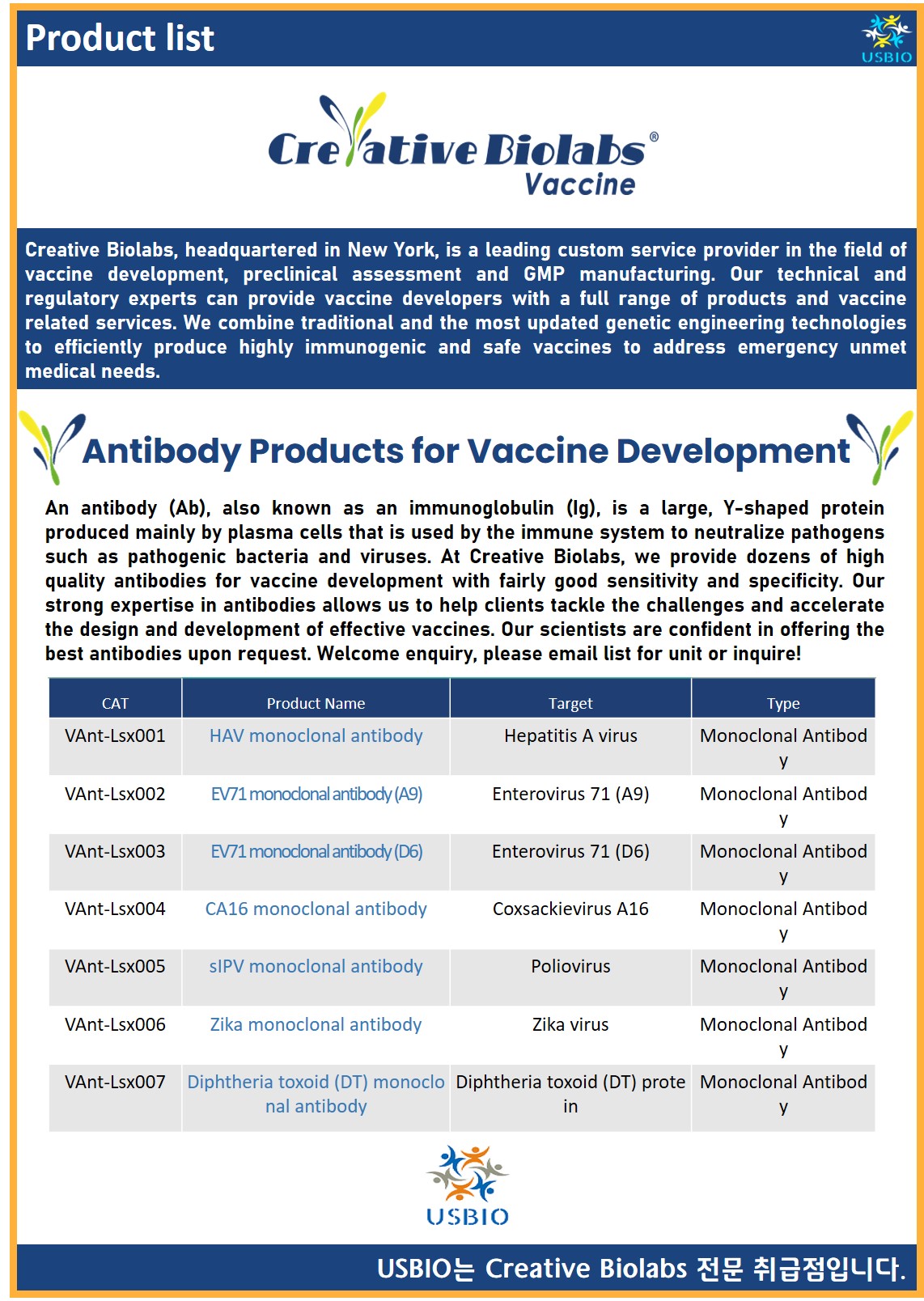 어스바이오(USBIO)는 Creative Biolabs 공식대리점 관련 업무대행/수입 전문 취급점입니다.