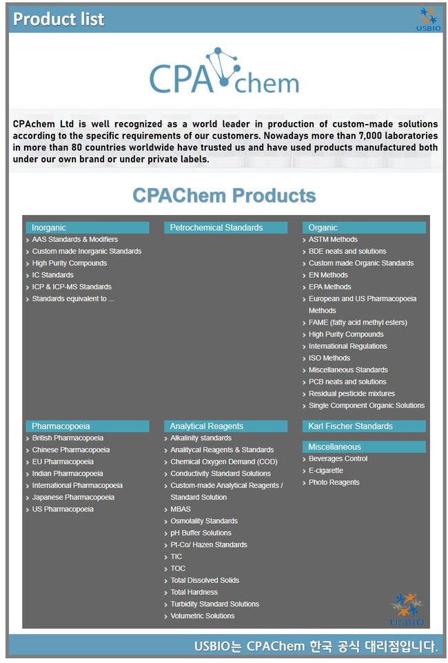 어스바이오(USBIO)는 CPAChem 한국 공식 대리점입니다.