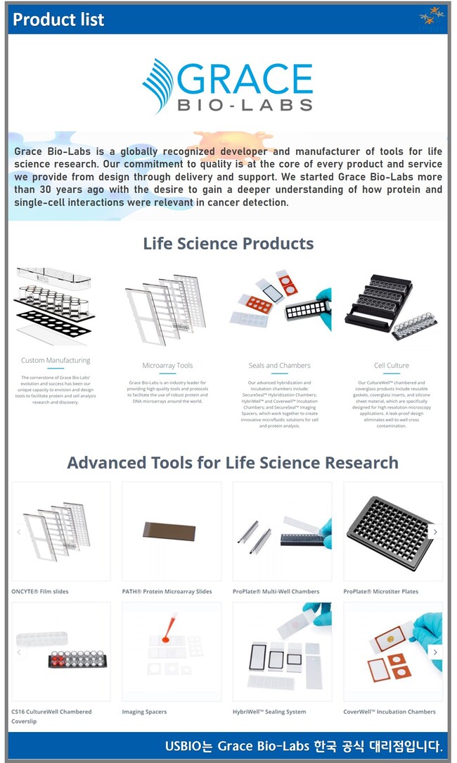 어스바이오(USBIO)는 Grace Bio-Labs 한국 공식 대리점입니다.