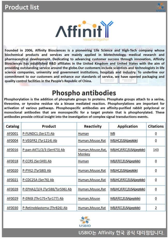 어스바이오(USBIO)는 Affinity Biosciences 한국 공식 대리점입니다.