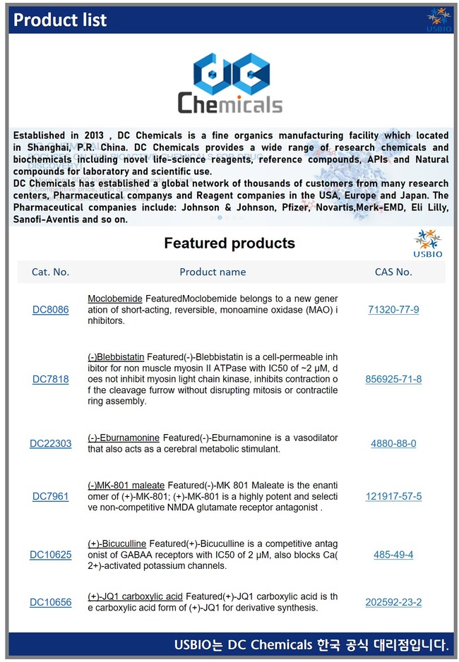 어스바이오는 DC Chemicals 한국 공식 대리점입니다.