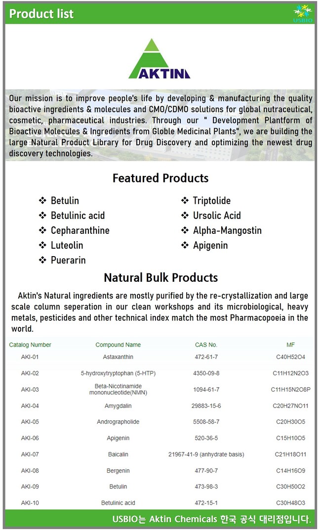 어스바이오(USBIO)는 Aktin Chemicals 한국 공식 대리점입니다.