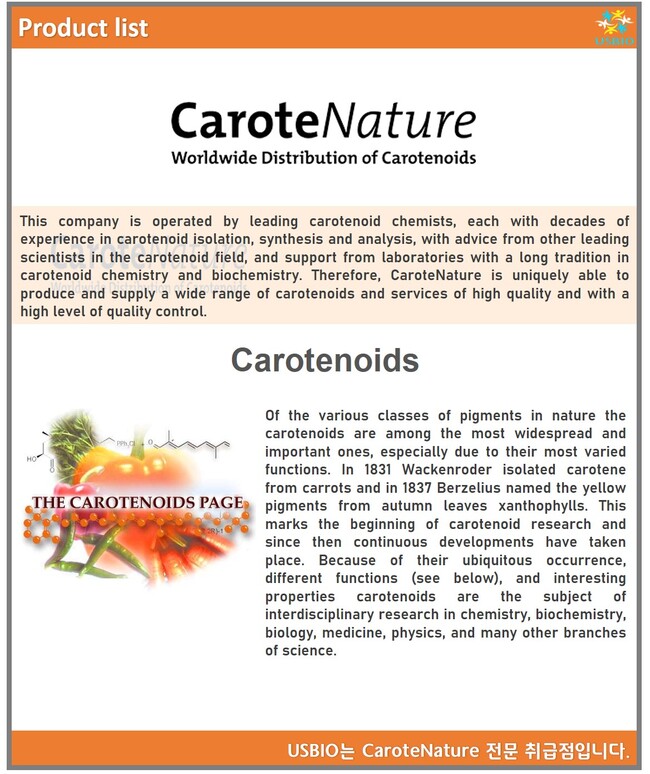 약 100가지의 카로티노이드를 보유하고 있으며, 이 제품들은 CaroteNature에서만 상업적으로 제공 받을 수 있습니다.