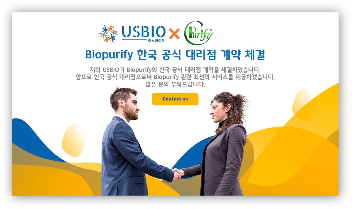 저희 어스바이오(USBIO)가 Biopurify와 한국 공식 대리점 계약을 체결하였습니다.