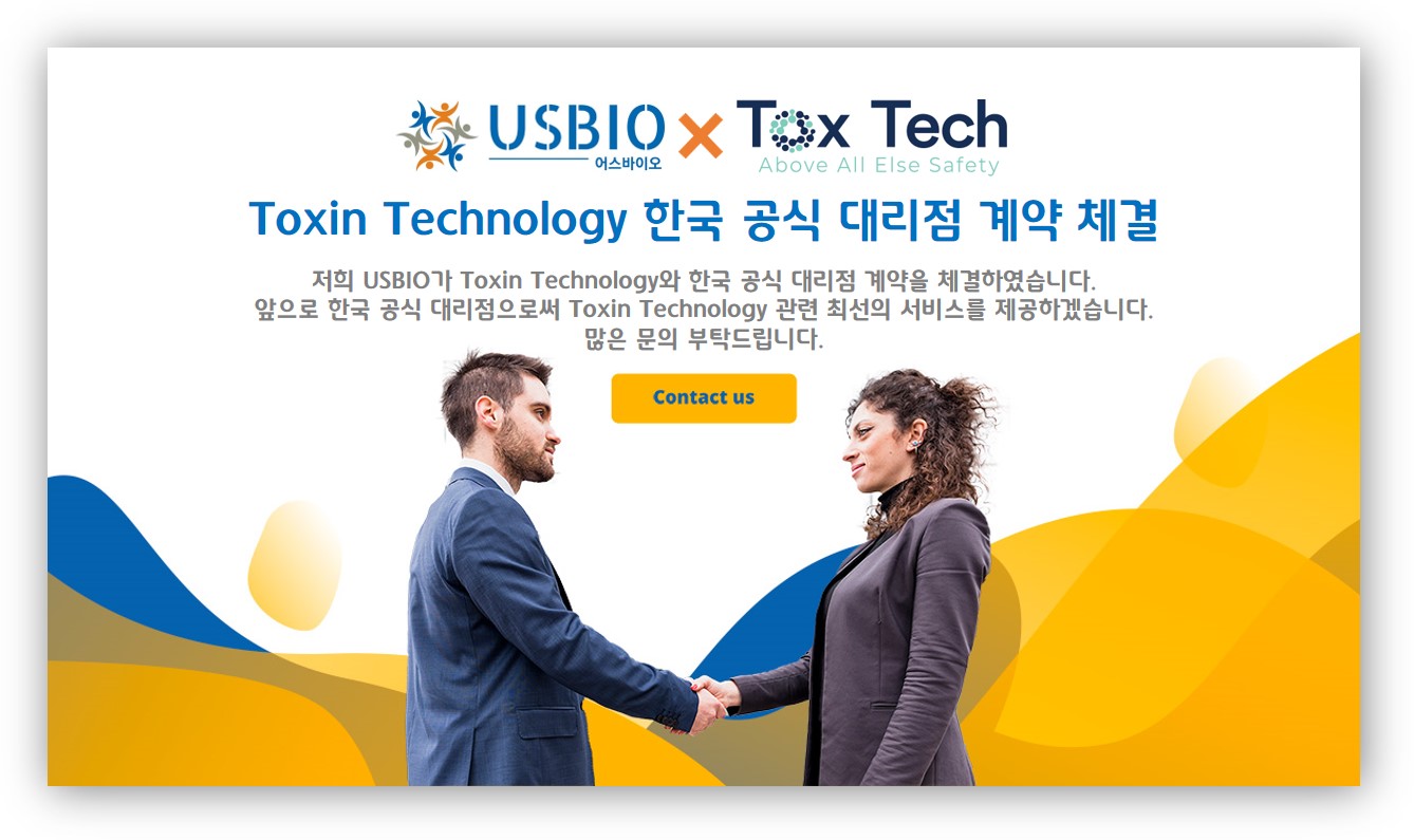 저희 어스바이오(USBIO)가 Toxin Technology와 한국 공식 대리점 계약을 체결하였습니다.