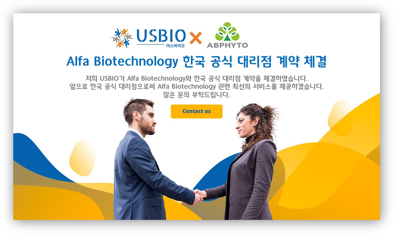 저희 어스바이오(USBIO)가 Alfa Biotechnology와 한국 공식 대리점 계약을 체결하였습니다.