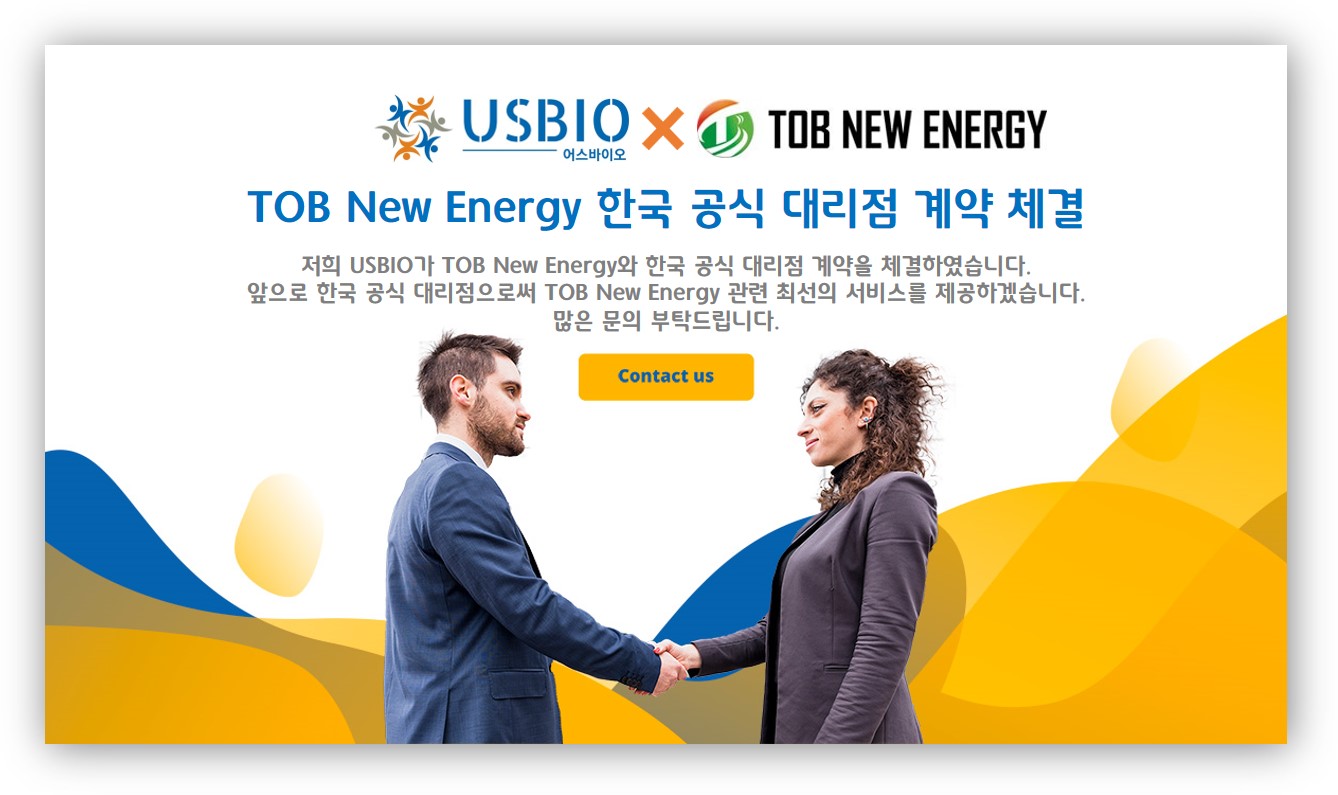 저희 어스바이오(USBIO)가 TOB New Energy와 한국 공식 대리점 계약을 체결하였습니다.