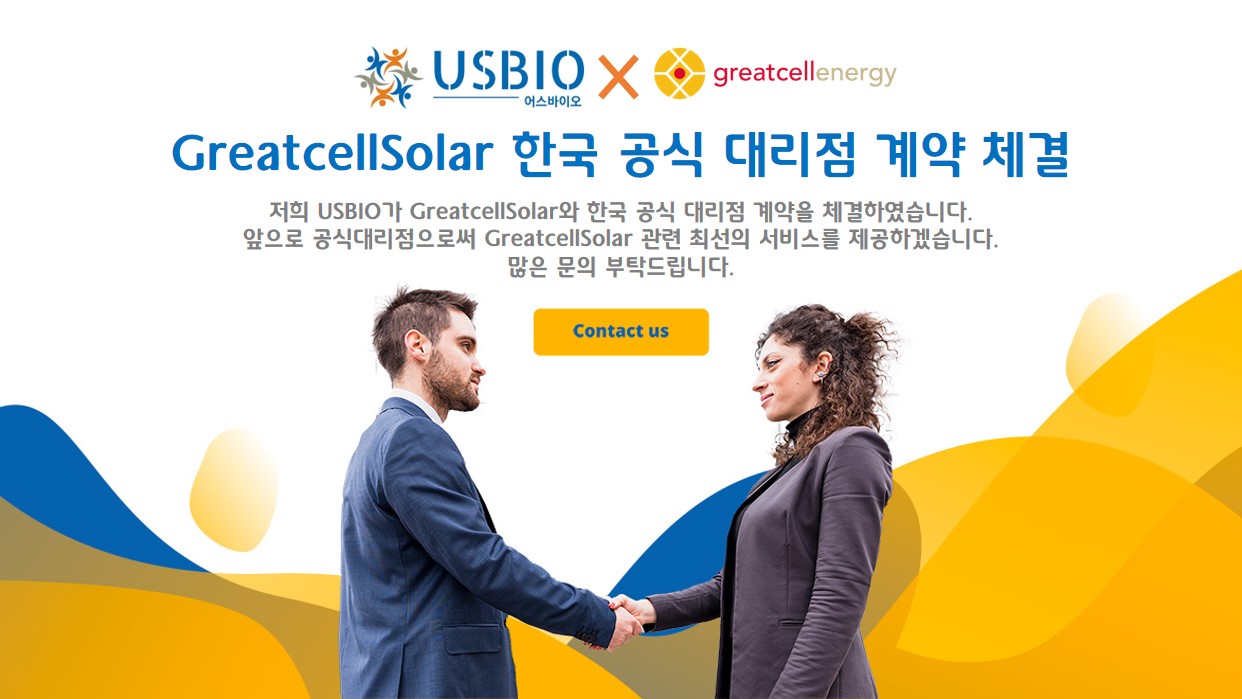 저희 어스바이오(USBIO)가 GreatcellSolar와 한국 공식 대리점 계약을 체결하였습니다.