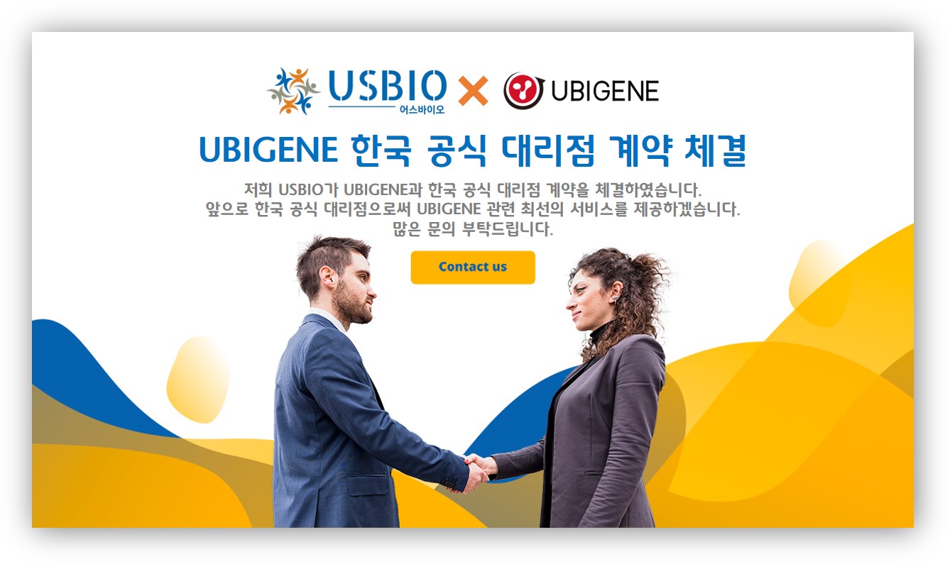 저희 어스바이오(USBIO)가 Ubigene과 한국 공식 대리점 계약을 체결하였습니다.