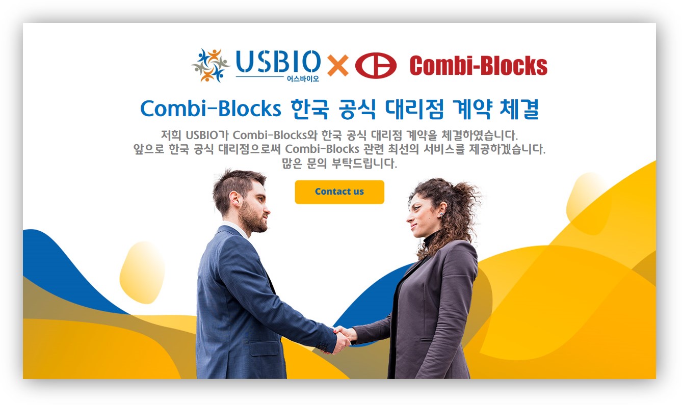 저희 어스바이오(USBIO)가 Combi Blocks와 한국 공식 대리점 계약을 체결하였습니다.