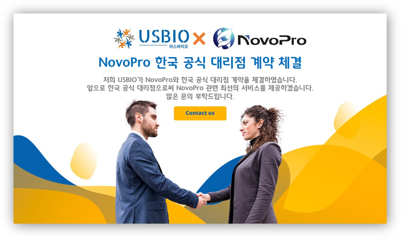 저희 어스바이오(USBIO)가 NovoPro Bioscience와 한국 공식 대리점 계약을 체결하였습니다.